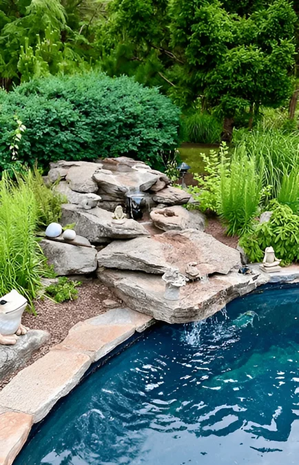 Remplissage progressif, avant l’introduction de nénuphars, poissons rouges, grenouilles ou carpes koï pour créer un véritable écosystème.